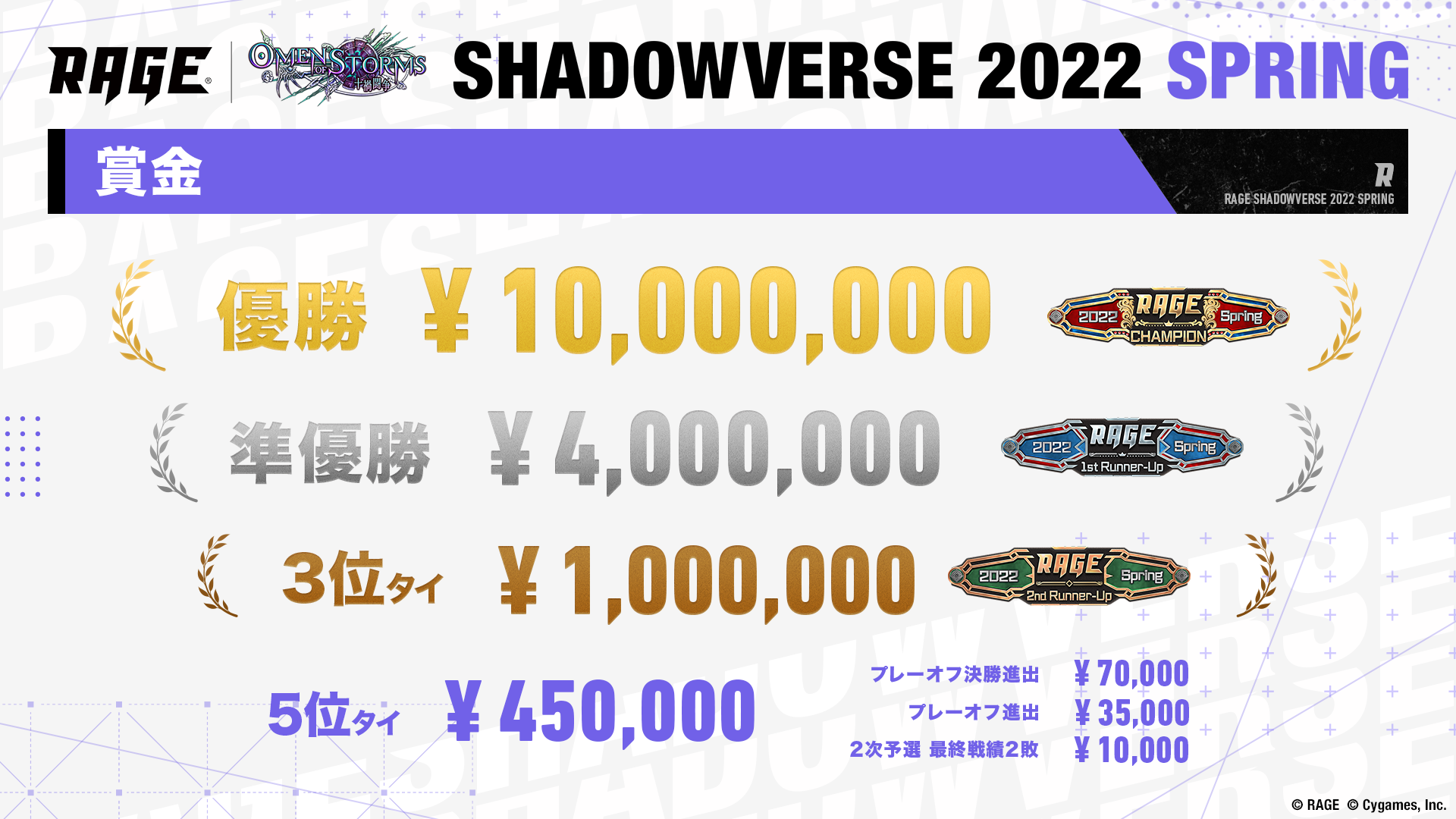 新シーズンの優勝賞金は1,000万円!「RAGE Shadowverse 2022 Spring」の開催決定!2021年12月19日(日)から2022年1月9日(日)までエントリー受付中