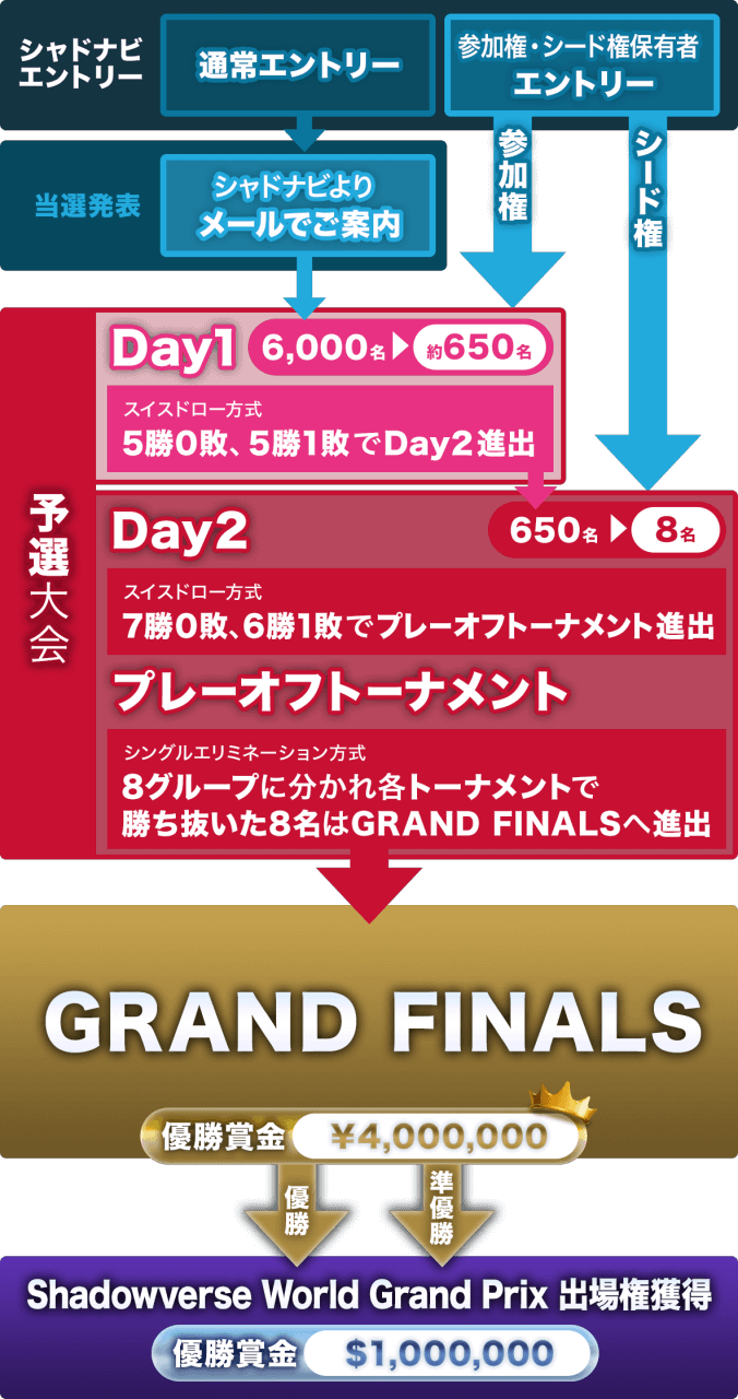 エントリー→予選大会Day1→Day2→GRAND FINALSまでの流れをご確認ください。