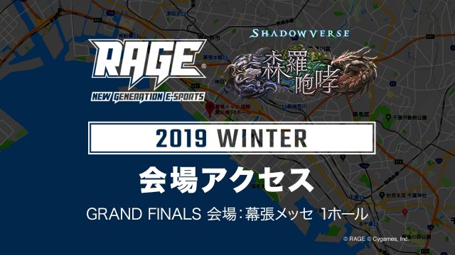 RAGE Shadowverse 2019 Winter いよいよ頂点が決まる! GRAND FINALS は11月23日(土)幕張メッセにて開催! 大会結果 開催概要 出演者 生配信 4人フライト式トーナメント プロ選手 × 星取りバトル 朝イチ来場者限定!豪華プレゼント抽選会 グッズ販売 タイムテーブル・会場マップ 会場アクセス ファイナリスト ヨシヒコ Tatsuno かけうどん magnet DiCE│どんと koharu かきく|EvK さわちゃん ツイート シェア 送る