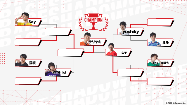 大会結果 テリヤキ プロフィール 山芋 プロフィール WTG|lol プロフィール yoshiky プロフィール Say プロフィール 指紋 プロフィール ミル プロフィール Thx|まほう プロフィール 予選大会結果はこちら ツイート シェア 送る