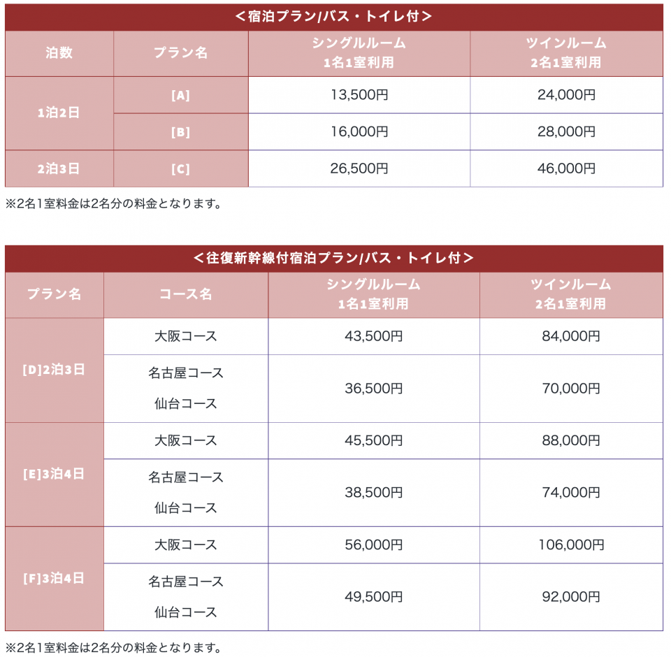 - 一度受付終了となった場合でも、キャンセルが出た場合は予告なく再販売となる場合がございます。