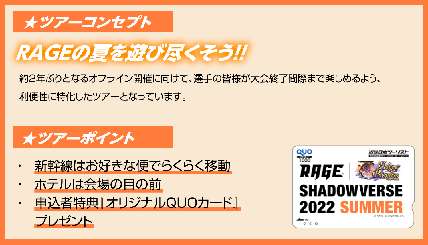 RAGE Shadowverse 2022 Summerのオフィシャルツアーの詳細のご案内です。