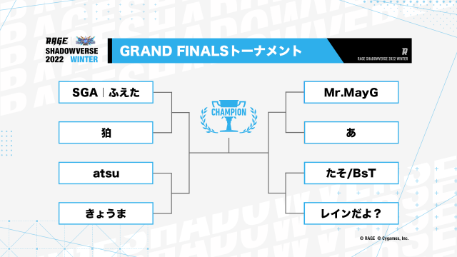 GRAND FINALS 大会結果 公式観戦配信 公認ミラー配信 生配信 出演者 開催概要 ファイナリスト SGA|ふえた 狛 atsu きょうま Mr.MayG あ たそ/BsT レインだよ? キャンペーン プレーオフ U-NEXT登録キャンペーン 予選大会 プレーオフ出場者22名 プレーオフ使用デッキ プレーオフ出演者 プレーオフ進出者 オンライン予選大会 2次予選使用デッキ 対戦表・結果速報 2次予選出演者 2次予選進出者(シード権を除く) 配信 1次予選出演者 開催概要 出場選手へのご案内 予選出場に関するご注意 大会デッキ登録方法 よくあるお問い合わせ エントリー エントリー方法 参加権・シード権 大会情報 大会規約 大会の流れ 賞金・賞品 大会ルール 大会概要 ツイート シェア 送る