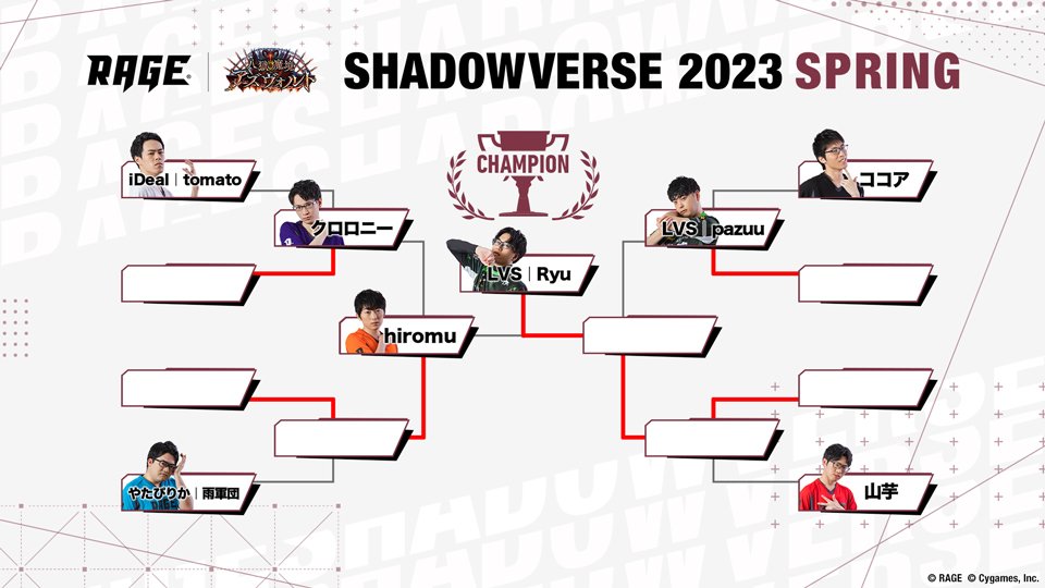 大会結果 LVS|Ryu プロフィール hiromu プロフィール クロロニー プロフィール LVS|pazuu プロフィール iDeal|tomato プロフィール やたぴりか|雨軍団 プロフィール ココア プロフィール 山芋 プロフィール 予選大会結果はこちら ツイート シェア 送る