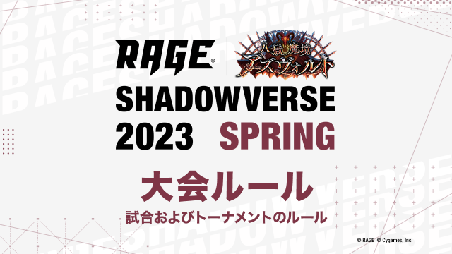 - 本規約が変更される際は RAGE 公式ウェブサイト(https://rage-esports.jp/shadowverse/category/2023spring)上で告知され、その時点で発効するものとします。