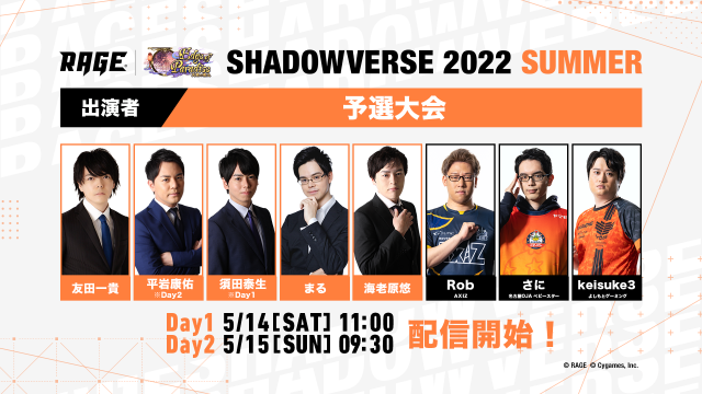 予選大会 プレーオフ出場者41名 予選大会使用デッキ 対戦表・結果速報 Shadowverse EVOLVE 販売ブース 予選大会出演者 配信 開催概要 Shadowverse EVOLVE 出展ブース 4人フライト式トーナメント 2Pick大会 3人チーム戦大会 星取りバトル オフィシャルツアー 出場選手へのご案内 予選出場に関するご注意 大会デッキ登録方法 よくあるお問い合わせ ツイート シェア 送る