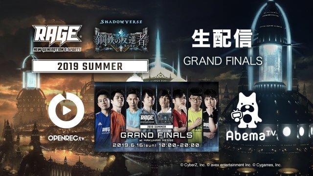 更新情報GRAND FINALS2019 Summer6月16日(日) RAGE Shadowverse GRAND FINALS を、OPENREC.tv、Abema.tv、YouTubeで生配信! 詳しくはこちら。...