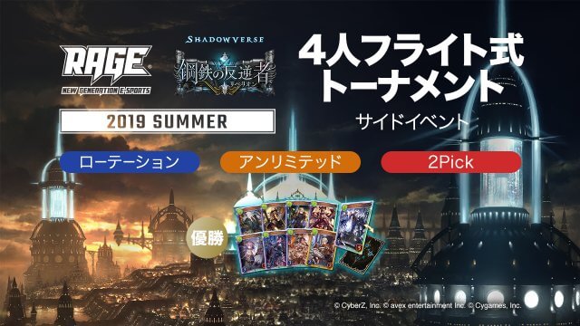 更新情報GRAND FINALS2019 Summer6月16日(日) RAGE Shadowverse GRAND FINALS のサイドイベントで、「4人フライト式トーナメント」を開催します。詳しくはこちら。...