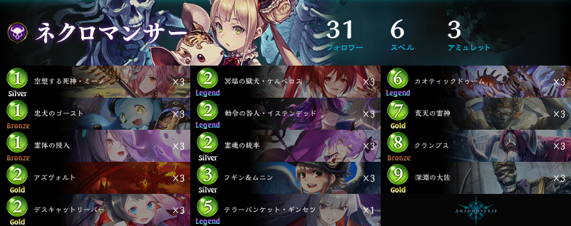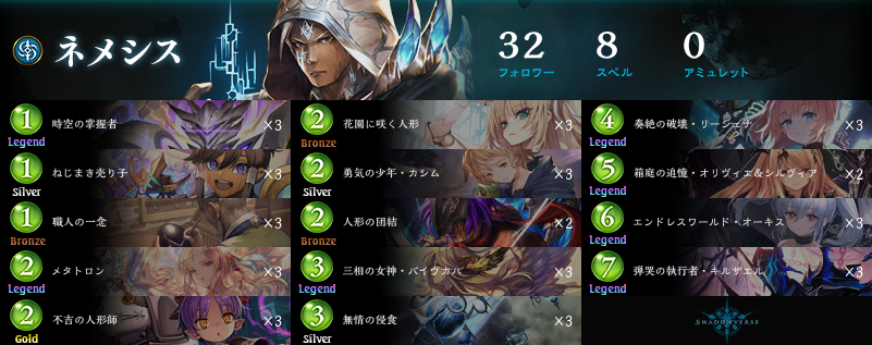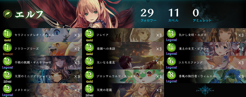 こうした情報について、JCG Shadowverse Open の結果を参考に、シェアの多いデッキから順に確認していきます。