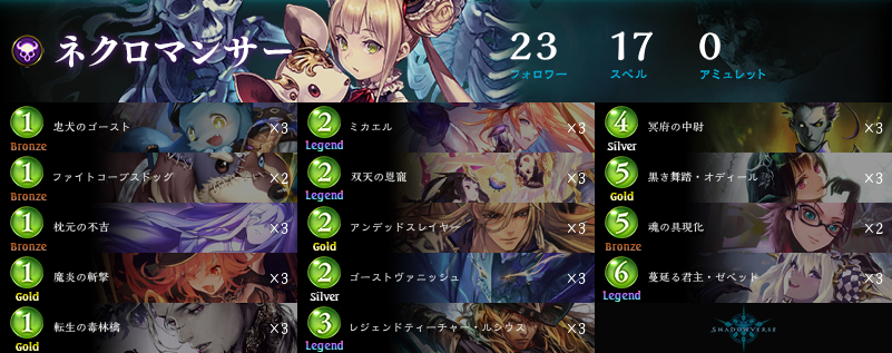 「Shadowverse Invitational 2024」 3位タイ:iDeal | TBT選手のアグロネクロマンサー
