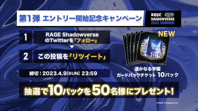 2023 Summer 予選大会 エントリー開始記念 第1弾キャンペーン!フォロー&リツイートでカードパックチケットを50名様にプレゼント!