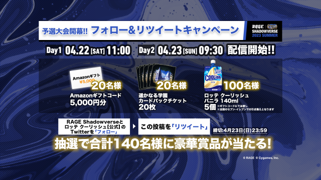 「オンライン予選」予選大会Day2 開催記念キャンペーン!フォローと引用リツイートで抽選で23名様に賞品が当たる!