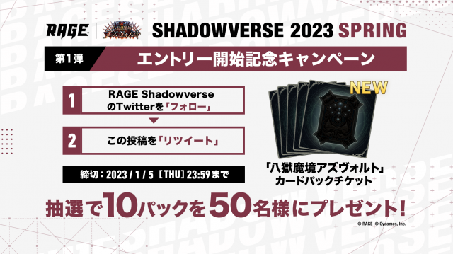 2023 Spring 予選大会 エントリー開始記念キャンペーン!フォロー&リツイートでカードパックチケットを50名様にプレゼント!