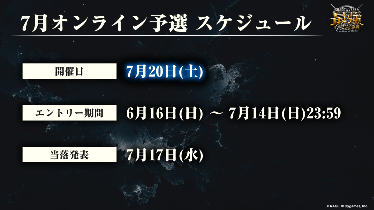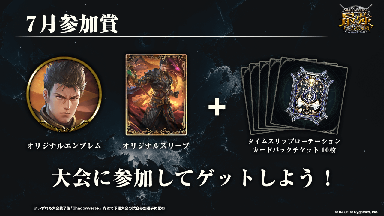 「Shadowverse 最強チーム決定戦 powered by RAGE 7月オンライン予選」の詳細情報の発表、およびエントリー受付を開始しました!