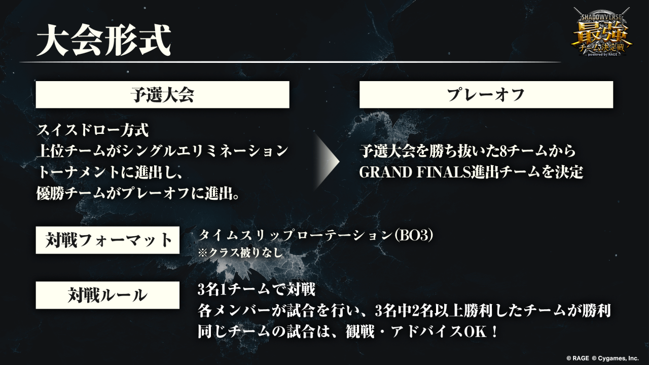 「Shadowverse 最強チーム決定戦 powered by RAGE 7月オンライン予選」大会情報発表!エントリー受付開始!エントリー締切は7月14日(日)23:59まで!