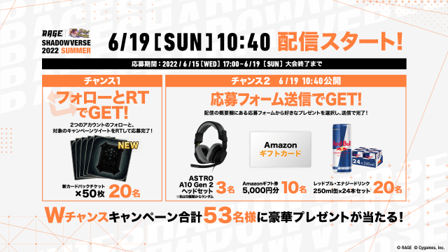 新着情報 RAGE Shadowverse 2024 Summer 大会結果 および 全日程終了の御礼 2024.6.24お知らせGRAND FINALS RAGE運営事務局でございます。 「RAGE Shadowverse 2024 Summer」は、多くの皆様にご視聴いただき、大盛況の中、無事終了いたしました。 誠にありがとうございました! 「RAG... RAGE Shadowverse 2024 Spring 大会結果 および 全日程終了の御礼 2024.3.24お知らせGRAND FINALS RAGE運営事務局でございます。 「RAGE Shadowverse 2024 Spring」は、多くの皆様にご視聴いただき、大盛況の中、無事終了いたしました。 誠にありがとうございました! 「RAG... 本日開催!「RAGE Shadowverse 2024 Spring」GRAND FINALS! 2024.3.24お知らせGRAND FINALS2022 Spring RAGE Shadowverse 2024 Spring 2024年最初の大会となる「RAGE Shadowverse 2024 Spring」。 激しい予選を勝ち抜いた8名による最終決戦が、いよいよ... RAGE Shadowverse 2023 Autumn 大会結果 および 全日程終了の御礼 2023.9.24お知らせGRAND FINALS RAGE運営事務局でございます。 「RAGE Shadowverse 2023 Autumn」は、多くの皆様にご視聴いただき、大盛況の中、無事終了いたしました。 誠にありがとうございました! 「RAG... RAGE Shadowverse 2023 Summer 大会結果 および 全日程終了の御礼 2023.6.21お知らせGRAND FINALS RAGE運営事務局でございます。 「RAGE Shadowverse 2023 Summer」は、多くの皆様にご視聴いただき、大盛況の中、無事終了いたしました。 誠にありがとうございました! &nbs... RAGE Shadowverse 2023 Spring 大会結果 および 全日程終了の御礼 2023.3.19お知らせGRAND FINALS RAGE運営事務局でございます。 「RAGE Shadowverse 2023 Spring」は、多くの皆様にご視聴いただき、大盛況の中、無事終了いたしました。 誠にありがとうございました! &nbs... スペシャル動画をもれなくゲット!抽選で賞品をゲット! GRAND FINALSフォロー&リツイートキャンペーン! 2022.12.19キャンペーンGRAND FINALS RAGE運営事務局でございます。 「RAGE Shadowverse 2022 Winter」GRAND FINALSでは、 『スペシャル動画をもれなくゲット!抽選で賞品をゲット! GRAND FIN... RAGE Shadowverse 2022 Autumn 大会結果 および 全日程終了の御礼 2022.9.23お知らせGRAND FINALS2022 Autumn RAGE運営事務局でございます。 オフラインで開催いたしました「RAGE Shadowverse 2022 Autumn」は、多くの皆様にご視聴いただき、大盛況の中、無事終了いたしました。 誠にありが... ファイナリストデッキ公開!! 「RAGE Shadowverse 2022 Autumn」GRAND FINALS 2022.9.23お知らせGRAND FINALSファイナリスト RAGE運営事務局でございます。 「RAGE Shadowverse 2022 Autumn」GRAND FINALS 全ファイナリストのデッキリストを公開いたしました。 デッキリストは各ファイナリス... 本日開催!「RAGE Shadowverse 2022 Autumn」GRAND FINALS! 2022.9.23お知らせGRAND FINALS2022 Autumn RAGE Shadowverse 2022 Autumn 約2年ぶりのオフラインで開催された「RAGE Shadowverse 2022 Autumn」。 激しい予選を勝ち抜いた8名による最終決戦が、... RAGE応援!Wチャンスキャンペーン! 2022.9.20キャンペーンGRAND FINALS2022 Autumn RAGE運営事務局でございます。 「RAGE Shadowverse 2022 Autumn」GRAND FINALSで 「RAGE応援!Wチャンスキャンペーン!」を実施いたします。 チャンス① RA... RAGE Shadowverse 2022 Summer 大会結果 および 全日程終了の御礼 2022.6.19お知らせGRAND FINALS2022 Summer RAGE運営事務局でございます。 約2年ぶりのオフラインで開催いたしました「RAGE Shadowverse 2022 Summer」は、多くの皆様にご視聴いただき、大盛況の中、無事終了いたしました。... ファイナリストデッキ公開!! 「RAGE Shadowverse 2022 Summer」GRAND FINALS 2022.6.19お知らせGRAND FINALSファイナリスト RAGE運営事務局でございます。 「RAGE Shadowverse 2022 Summer」GRAND FINALS 全ファイナリストのデッキリストを公開いたしました。 デッキリストは各ファイナリス... 本日開催!「RAGE Shadowverse 2022 Summer」GRAND FINALS! 2022.6.19お知らせGRAND FINALS2022 Summer RAGE Shadowverse 2022 Summer 約2年ぶりのオフラインで開催された「RAGE Shadowverse 2022 Summer」。 激しい予選を勝ち抜いた8名による最終決戦が、... RAGE応援!Wチャンスキャンペーン! 2022.6.15キャンペーンGRAND FINALS RAGE運営事務局でございます。 「RAGE Shadowverse 2022 Summer」GRAND FINALSで 「RAGE応援!Wチャンスキャンペーン!」を実施いたします。 チャンス① RA... RAGE Shadowverse 2022 Spring 大会結果 および 全日程終了の御礼 2022.3.21お知らせGRAND FINALS2022 Spring RAGE運営事務局でございます。 本日開催いたしました「RAGE Shadowverse 2022 Spring」は、多くの皆様にご視聴いただき、大盛況の中、無事終了いたしました。 誠にありがとうござ... ファイナリストデッキ公開!! 「RAGE Shadowverse 2022 Spring」GRAND FINALS 2022.3.21お知らせGRAND FINALSファイナリスト2022 Spring RAGE運営事務局でございます。 「RAGE Shadowverse 2022 Spring」GRAND FINALS 全ファイナリストのデッキリストを公開いたしました。 デッキリストは各ファイナリス... RAGE応援!Wチャンスキャンペーン! 2022.3.16キャンペーンGRAND FINALS2022 Spring RAGE運営事務局でございます。 「RAGE Shadowverse 2022 Spring」GRAND FINALSで 「RAGE応援!Wチャンスキャンペーン!」を実施いたします。 チャンス① RA... RAGE Shadowverse 2021 Winter 大会結果 および 全日程終了の御礼 2021.11.7お知ら