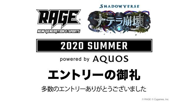 「RAGE Shadowverse 2020 Autumn powered by AQUOS」大会情報発表!エントリー受付開始!締切は7月5日(日)23:59まで!