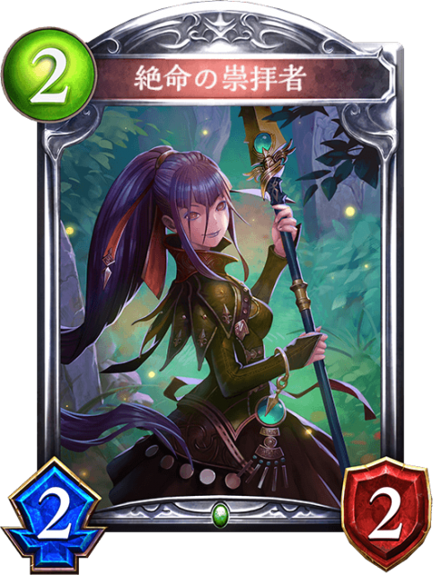 進化時効果の攻撃力デバフにより火力の高いフォロワーを食い止める、主に「縦の」攻勢に強いカードです。一方でフォロワーの破壊ではなく無力化、そして【潜伏】能力ゆえに盤面ロックとの相性も非常に良く、相手の横展開に対して《絶命の崇拝者》進化とバウンスを複数ターン重ねることで相手の打点を抑制し、7PPまで時間を稼ぎやすい特性も見逃せません。ドロー要員でもあり、さらには《万緑の回帰・ラティカ》の16点と合わせるリーサル要員でもあるといった具合で実に多芸なカードですが、裏を返せば切りたくなる場面の多いカードゆえに手札離れもよく、本当に必要なシーンで手元に残っていないといった展開を避けるためには、手札の消費可能なバウンスカードの枚数にも気を配る必要があるでしょう。