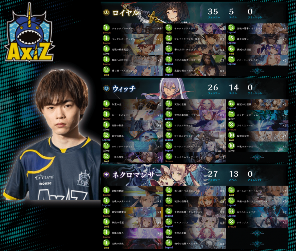 RAGE SHADOWVERSE PRO TOUR 1st Season ローテーション 優勝 AXIZ所属・Rumoi選手の選択デッキ