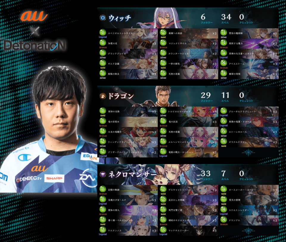 RAGE SHADOWVERSE PRO TOUR 1st Season ローテーション 本戦出場 auデトネーション所属・Spicies選手の選択デッキ