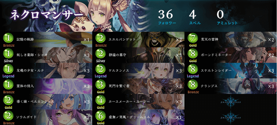 RAGE Shadowverse Pro League 21-22 第5節にてNTT-WESTリバレント所属のきょうま選手が使用した進化ネクロマンサー