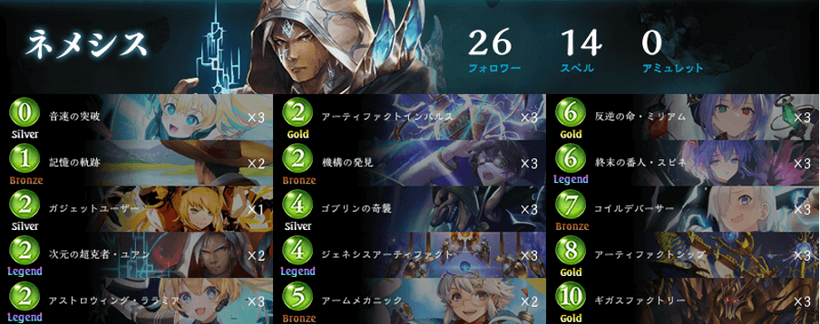 RAGE Shadowverse Pro League 21-22 第5節にてauデトネーション所属のミル選手が使用したアーティファクトネメシス