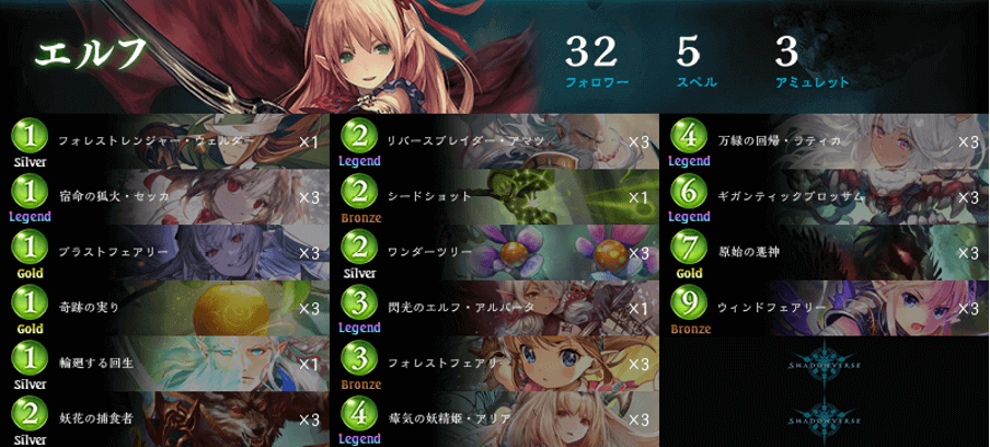 RAGE Shadowverse Pro League 21-22 第5節にてAXIZが登録したセッカエルフ