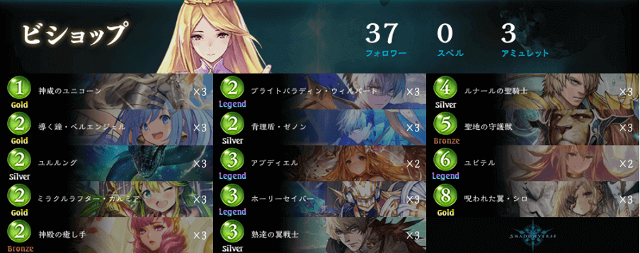 RAGE Shadowverse Pro League 21-22 第5節にてレバンガ☆SAPPORO所属のRyu選手が使用した守護ビショップ