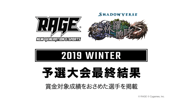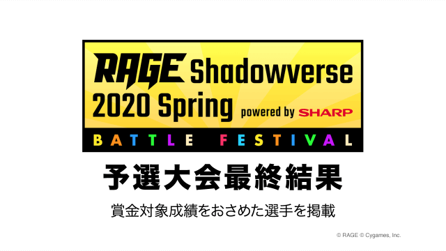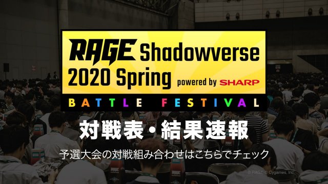 更新情報予選大会2020 SpringRAGE Shadowverse 2020 Spring 予選大会の組み合わせ対戦表を公開しました。 気になる選手の動向はこちらでチェック! 組み合わせ対戦表はこちら。...